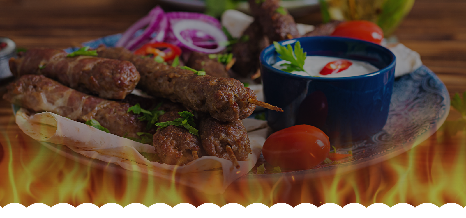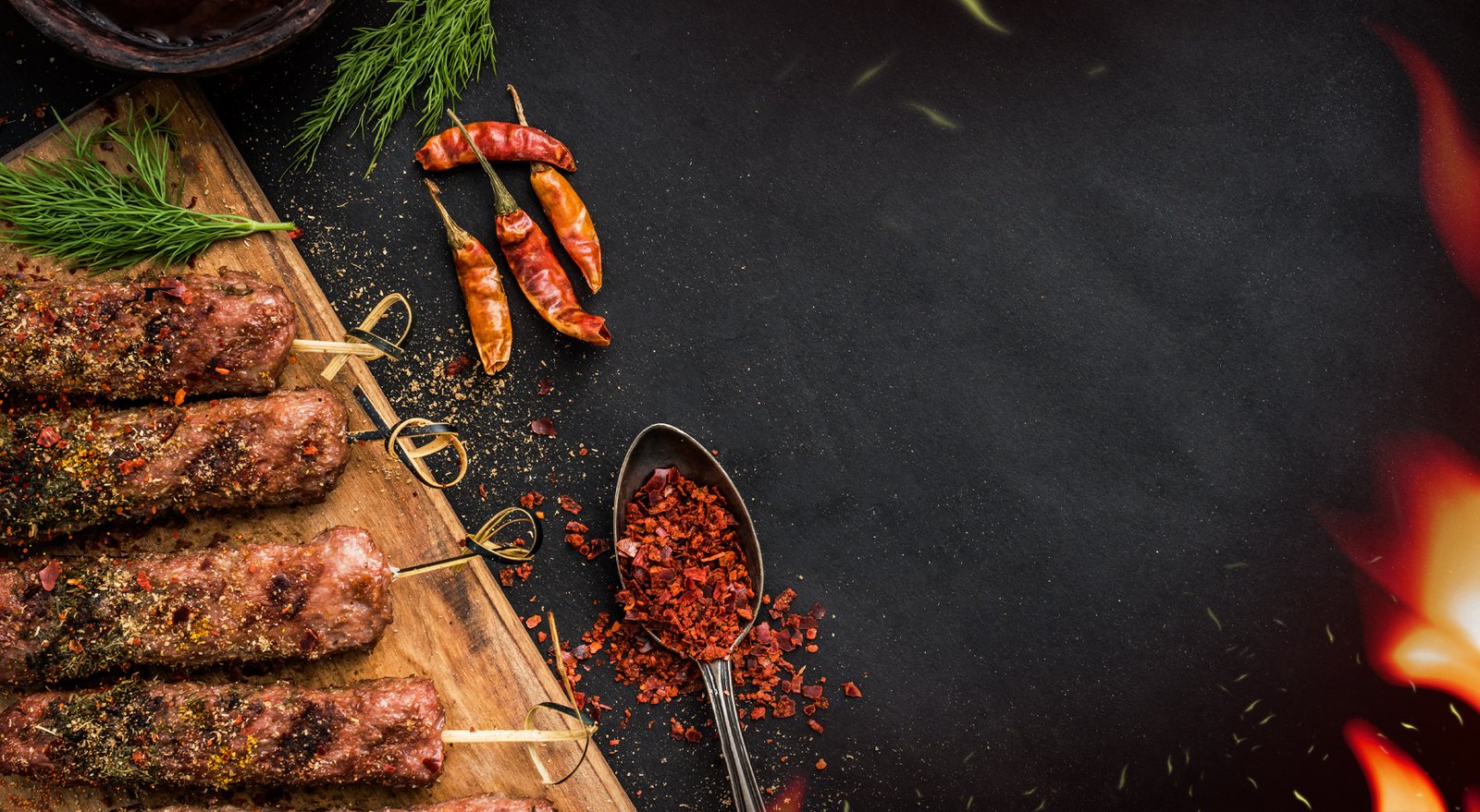 Premium mince molded onto skewers kissed by flames for charred...